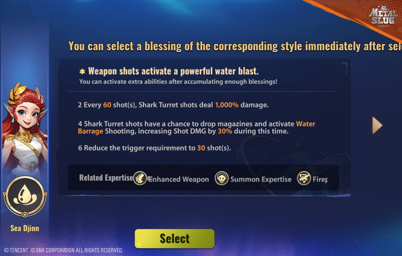 Sea Djinn, Neso: Weapon shots activate a powerful water blast.